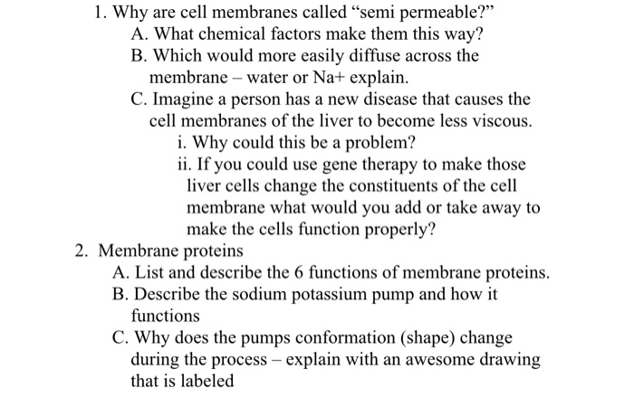 Solved 1 Why Are Cell Membranes Called Semi Permeable A Chegg Com
